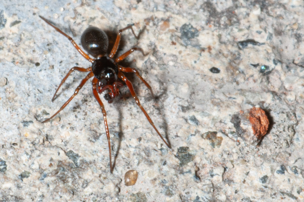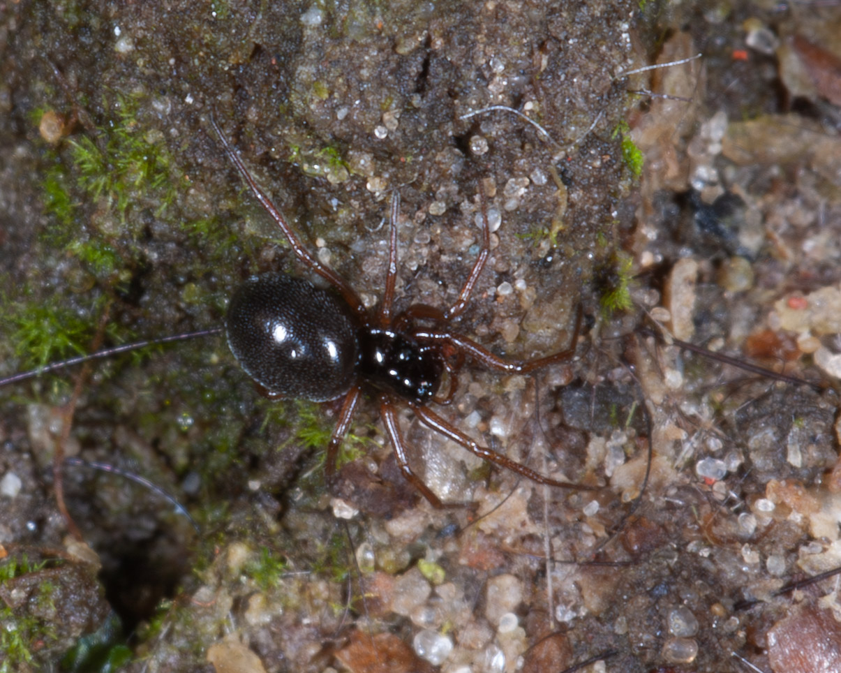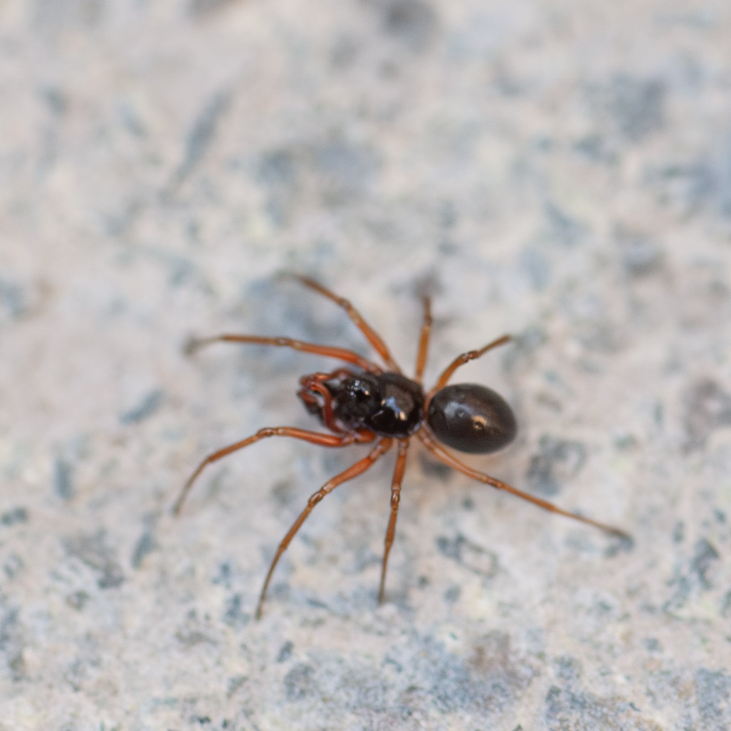 Een klein hangmatspinnetje. Nu we geen bleke stenen meer hebben, zijn die beesten totaal onvindbaar geworden.
