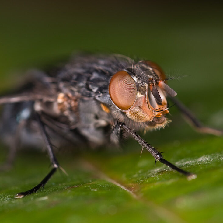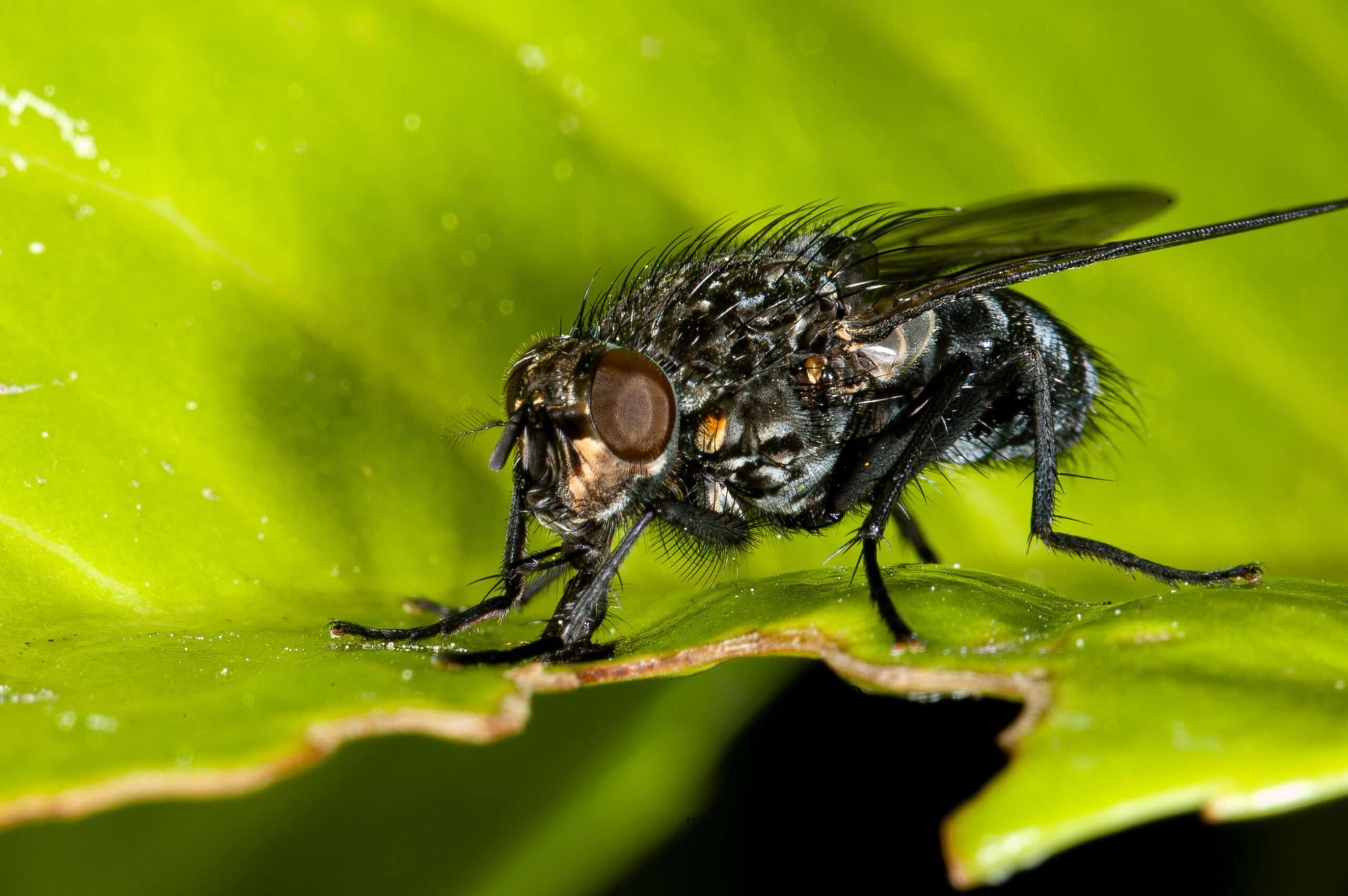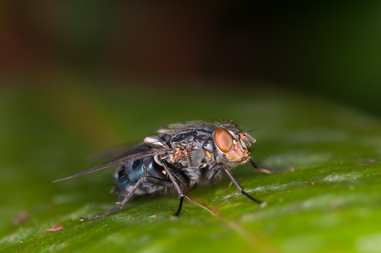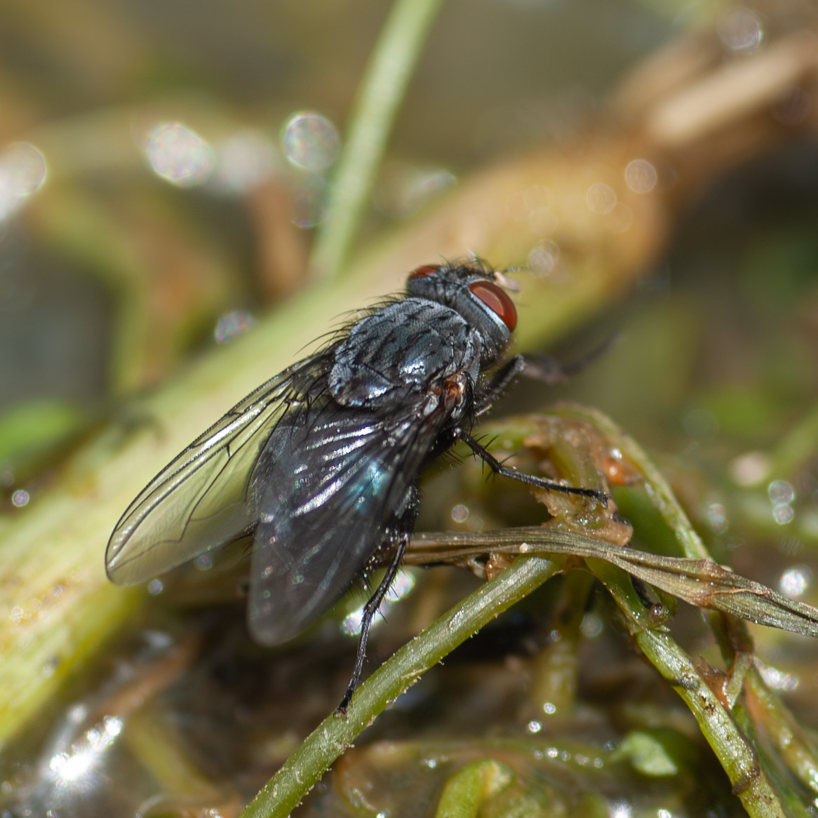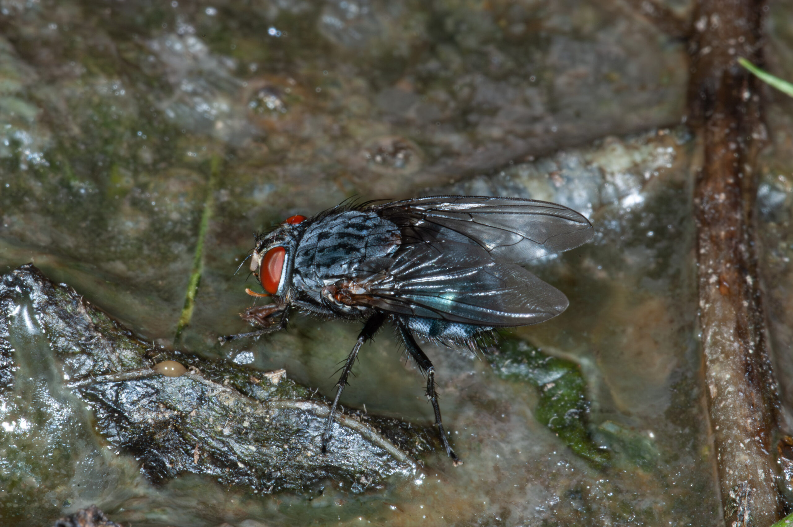 De roodwangbromvlieg is een vleesvlieg die hard lijkt op de blauwe vleesvlieg en ook blauw is, maar roodoranje wangen heeft en vandaar de naam.
