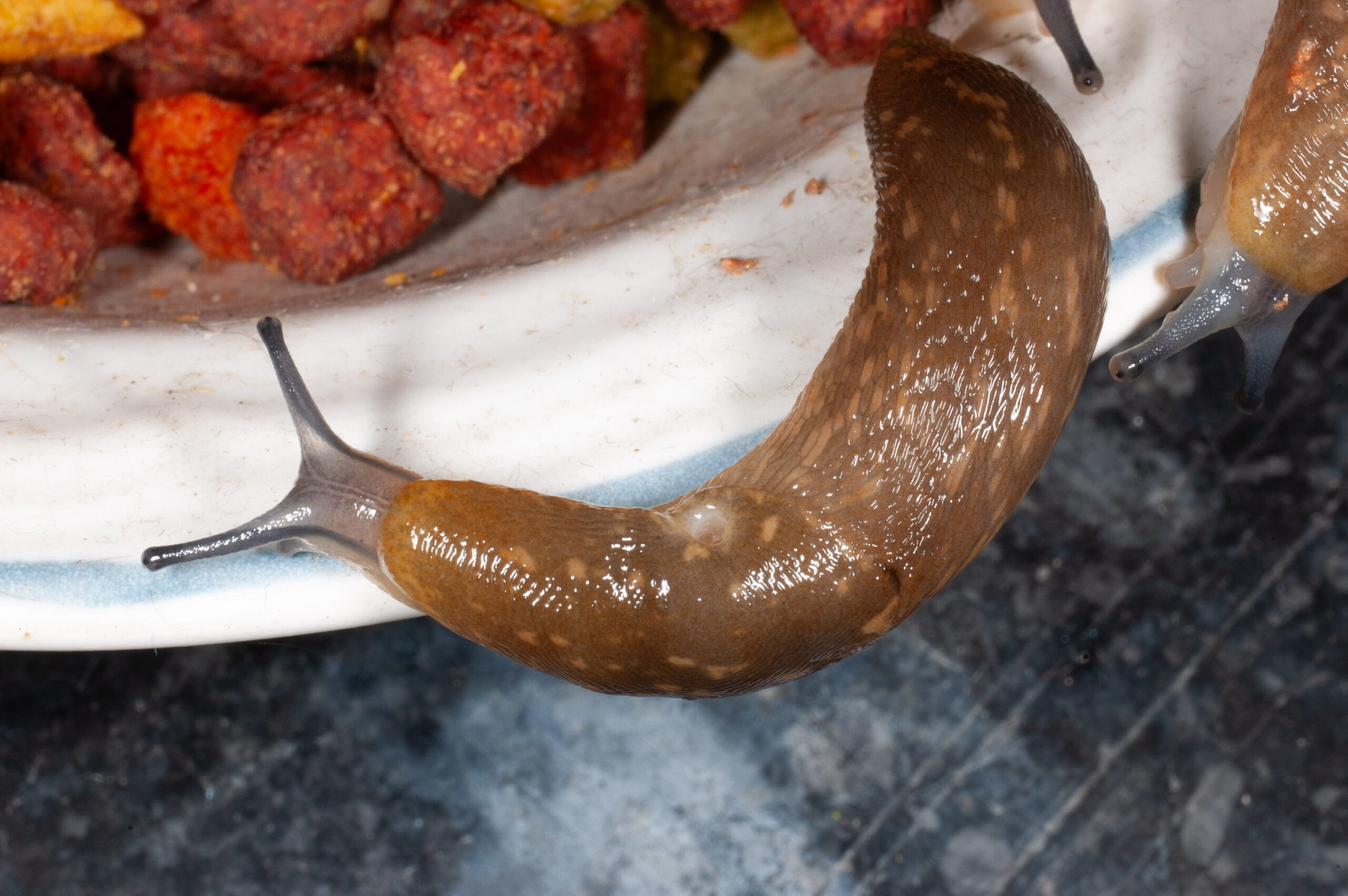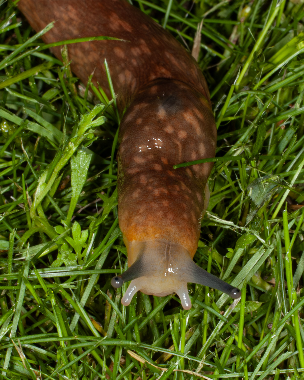 Een lichte aardslak, een soldaat in het ontelbare legioen naaktslakken die alles proberen op te vreten in onze tuin. Ik was er niet zeker van dat dit écht een lichte aardslak was, het ziet er gewoon een grote wegslak uit, maar de AI-toepassingen zeggen van niet. Onze tuin zat er vergeven van, in ieder geval.