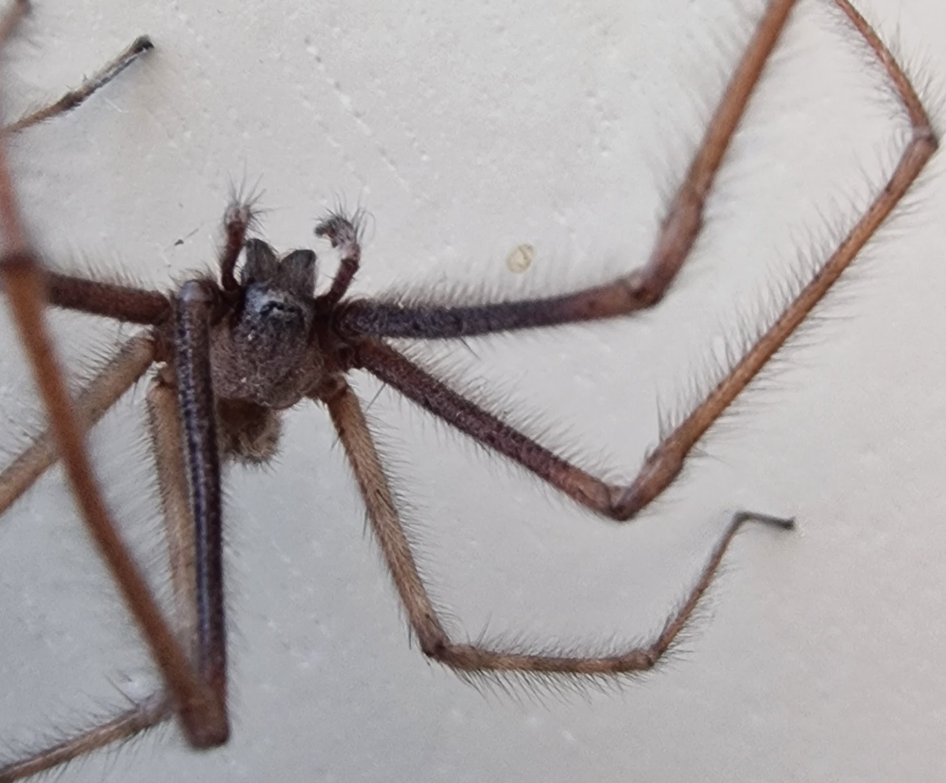 Dit beestje in oktober 2024 was aan het einde van zijn Latijn, een beetje in elkaar gedoken in de buurt van de frigo in de keuken. Jongste zoon, loebas van meer dan twintig jaar, was er begot bang van. Ik heb ze voorzichtig achter de frigo gezet.