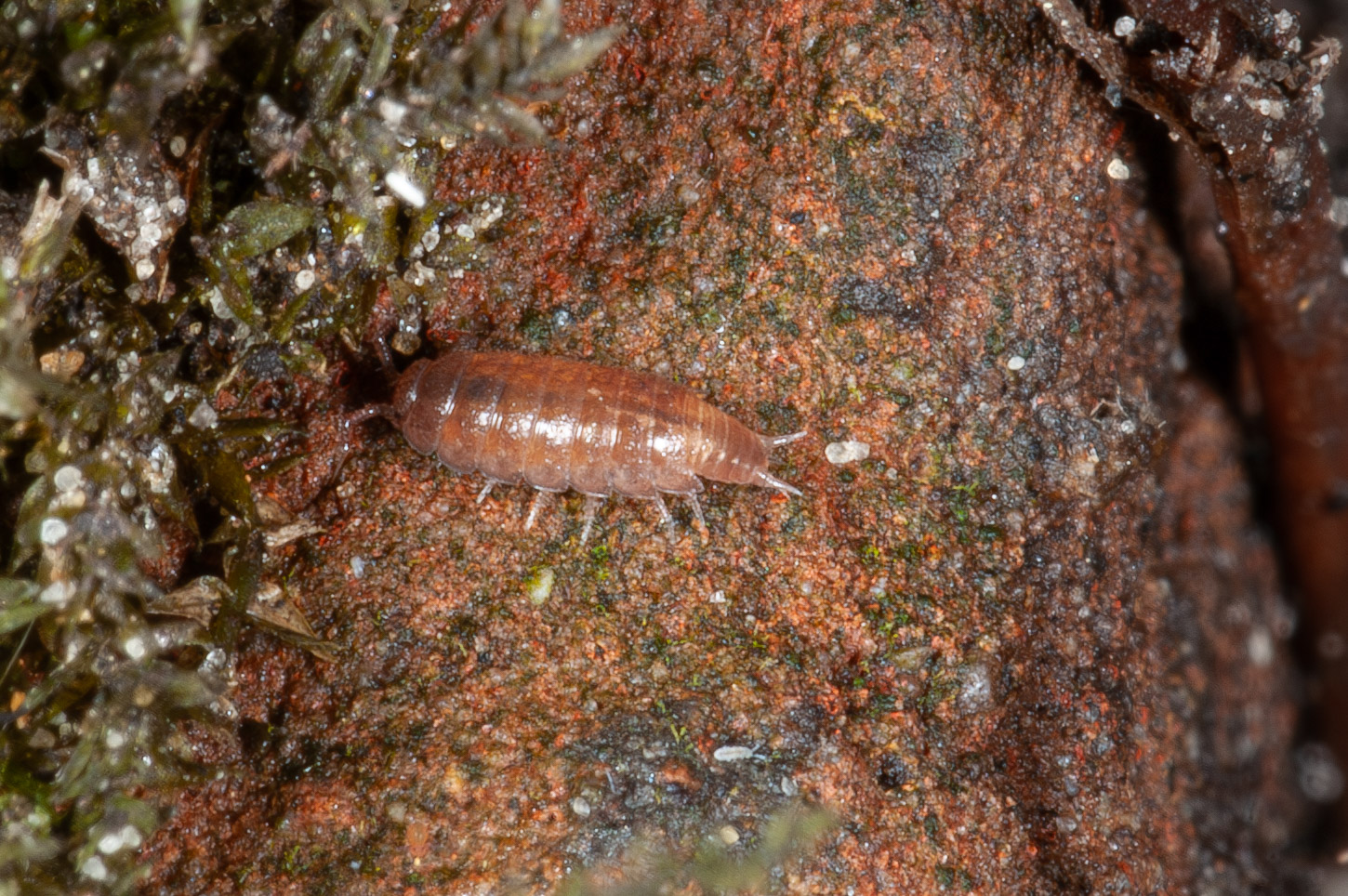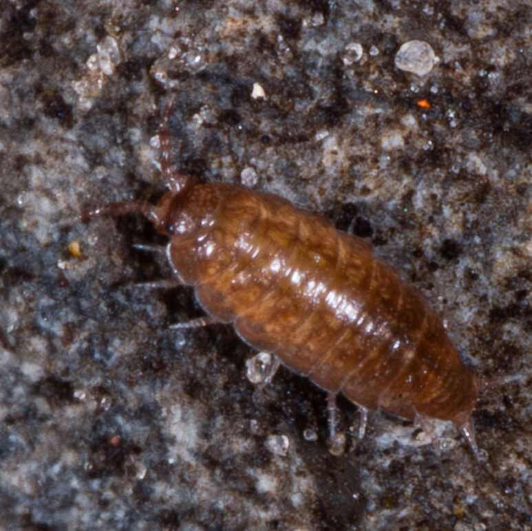 Op basis van habitat alleen (onder stenen en dood hout) is dit wellicht Trichoniscus pusillus, het gewoon paars drieoogje.