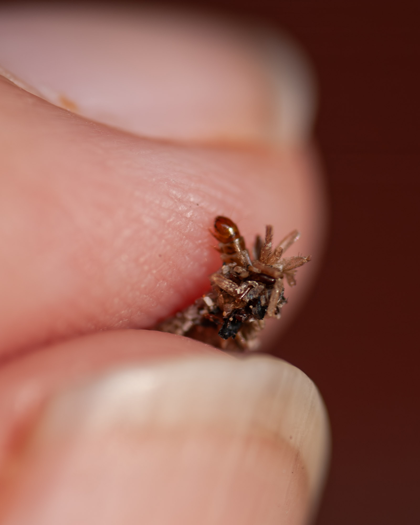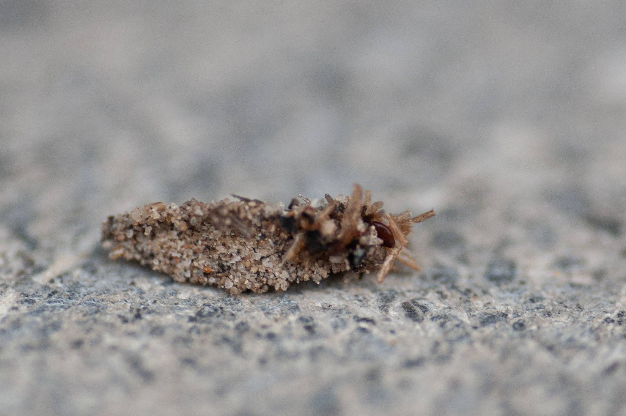 Een zandzakdrager, met een zak van zand en onder meer stukken vervelde spin. Ik heb hem teruggezet nadat ik hem vastgepakt heb, no worries.