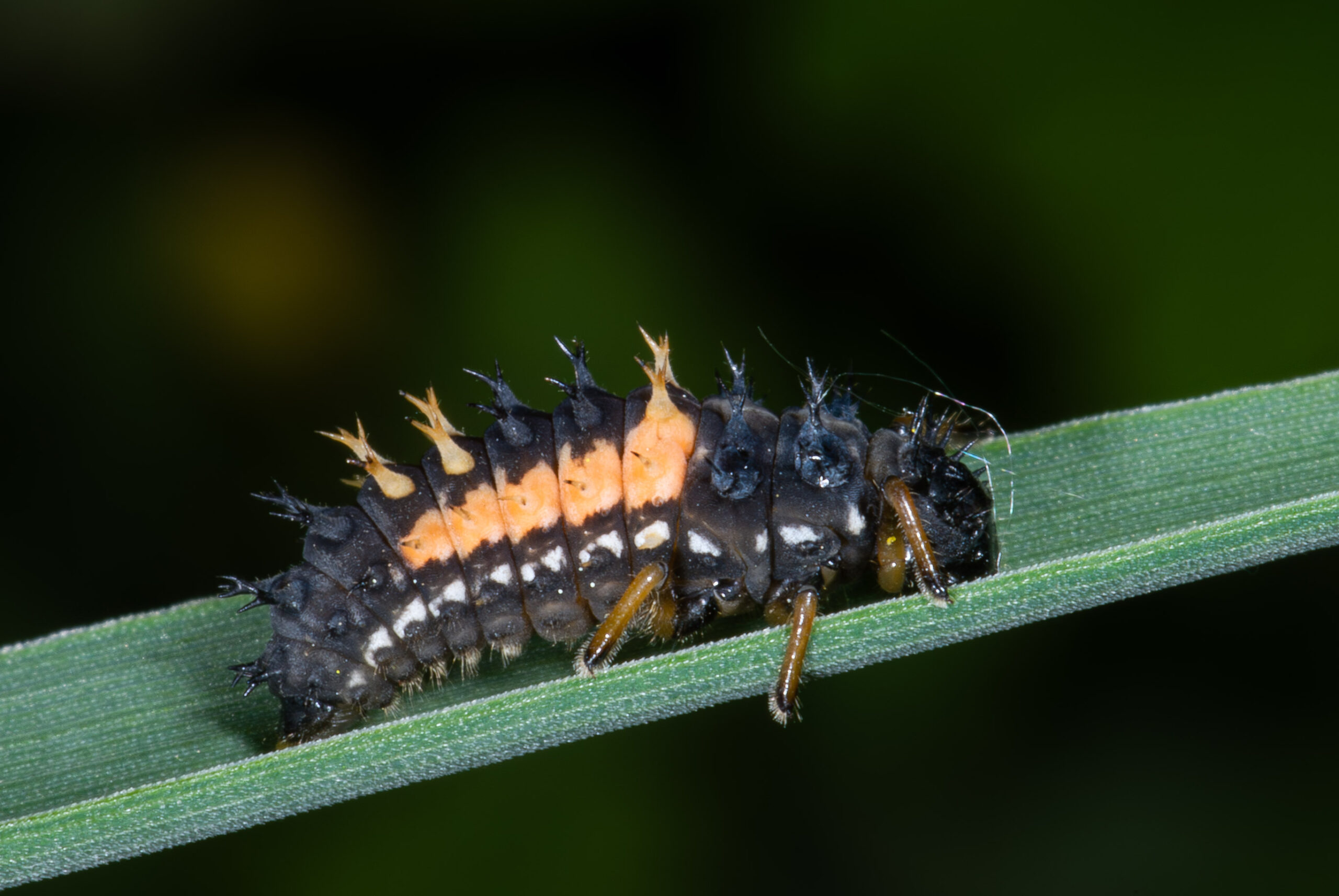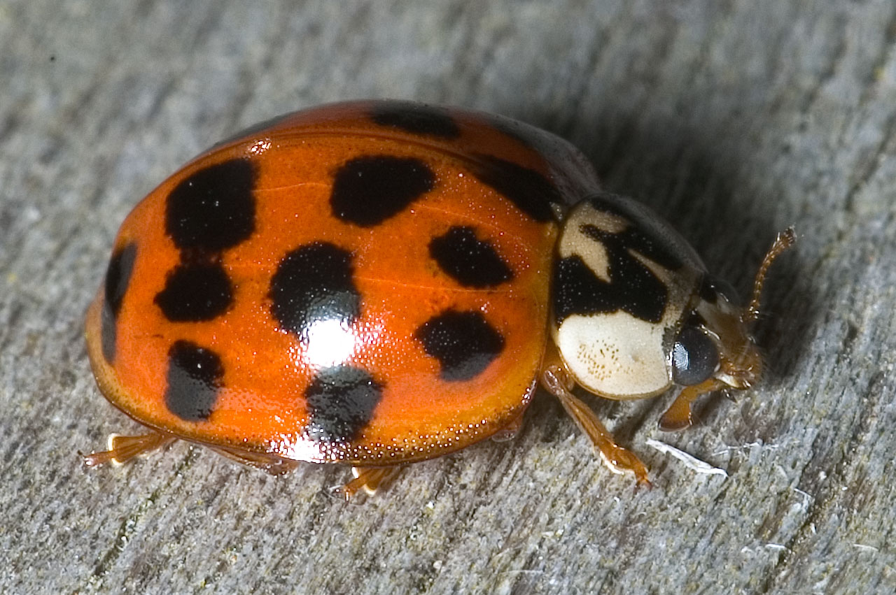 Het Aziatisch lieveheersbeestje werd als biologische bestrijding van bladluizen ingevoerd in België, eet inderdaad bladluizen (yay!), maar helaas ook larven van kevers zoals die van andere lieveheersbeestjes (boe!). Het lieveheersbeestje kan allerlei mogelijke kleuren en patronen hebben, van zwart over oranje tot rood. De gemakkelijkste manier om het te onderscheiden van inheemse lieveheersbeestjes is dat de achterkant van het schild altijd een beetje ingedeukt lijkt.
