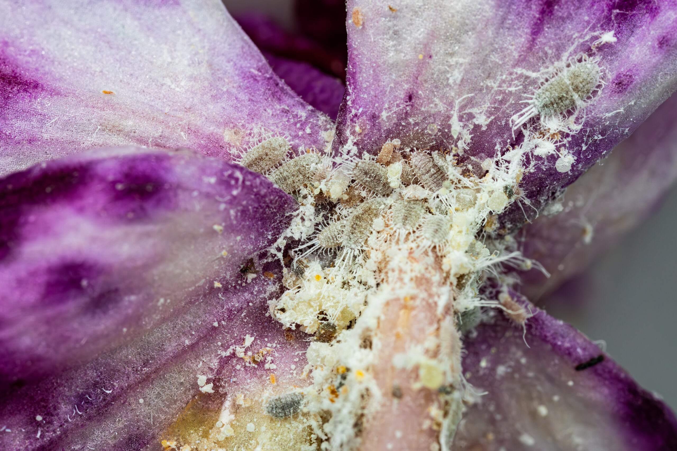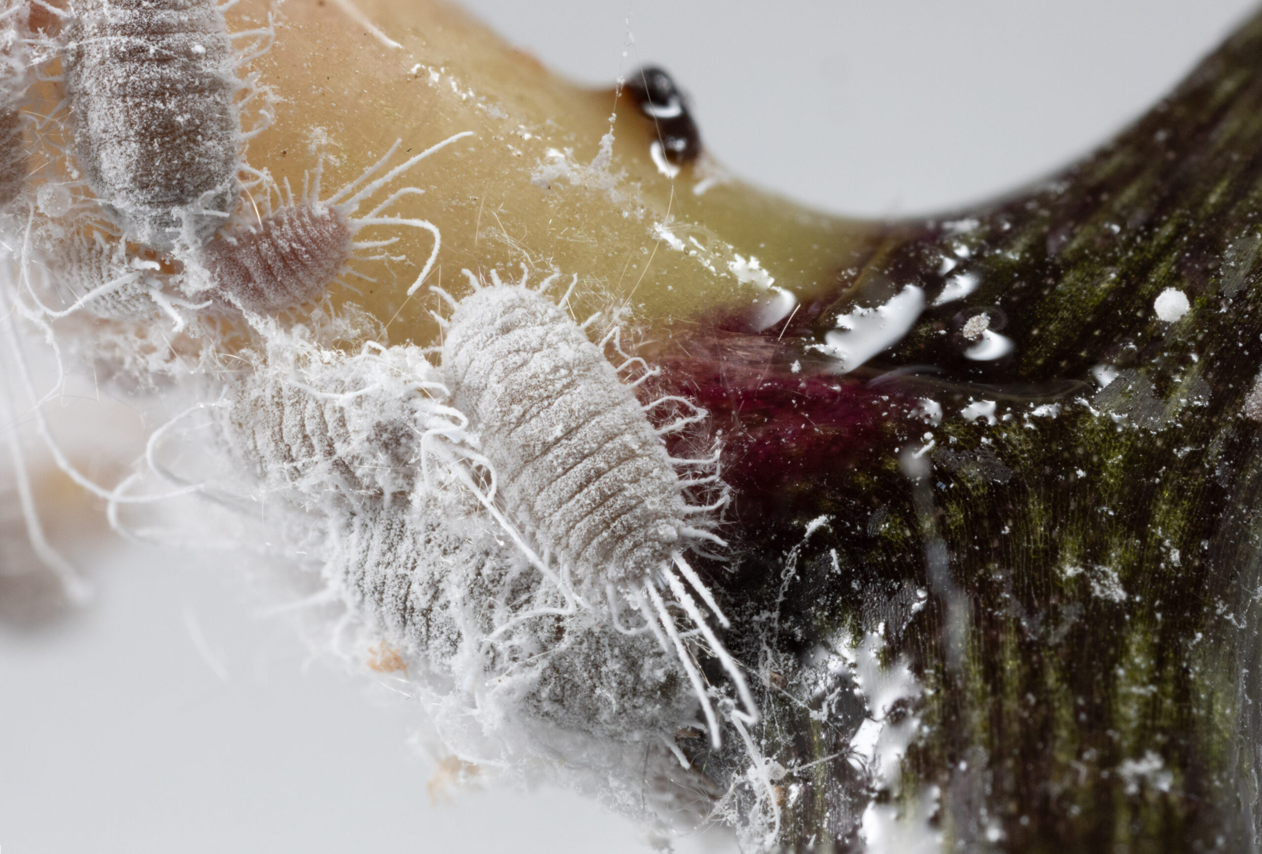 Ze zitten al sinds jaar en dag op die ene orchidee die mijn moeder ons gegeven heeft ergens in 2003, maar sinds ik een hele reeks orchideeën van haar ziekenhuis/wzc-kamer heb geërfd, zitten ze op alle orchideeën.