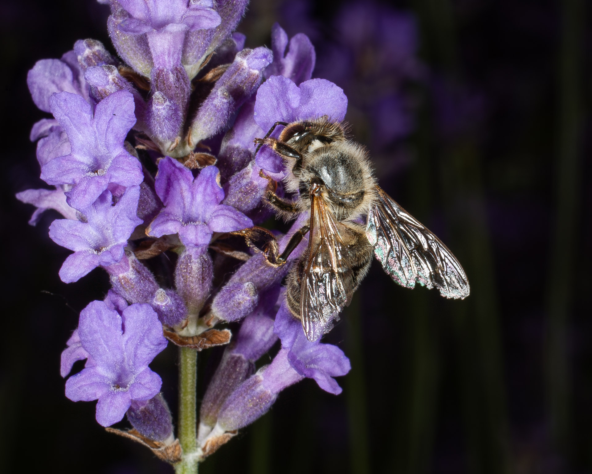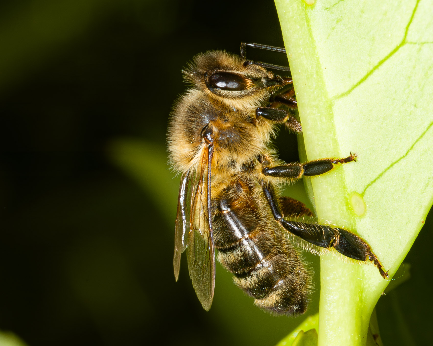 Niet verschrikkelijk veel honingbijen in de buurt, maar toch regelmatig eens een die op een bloem komt zitten.