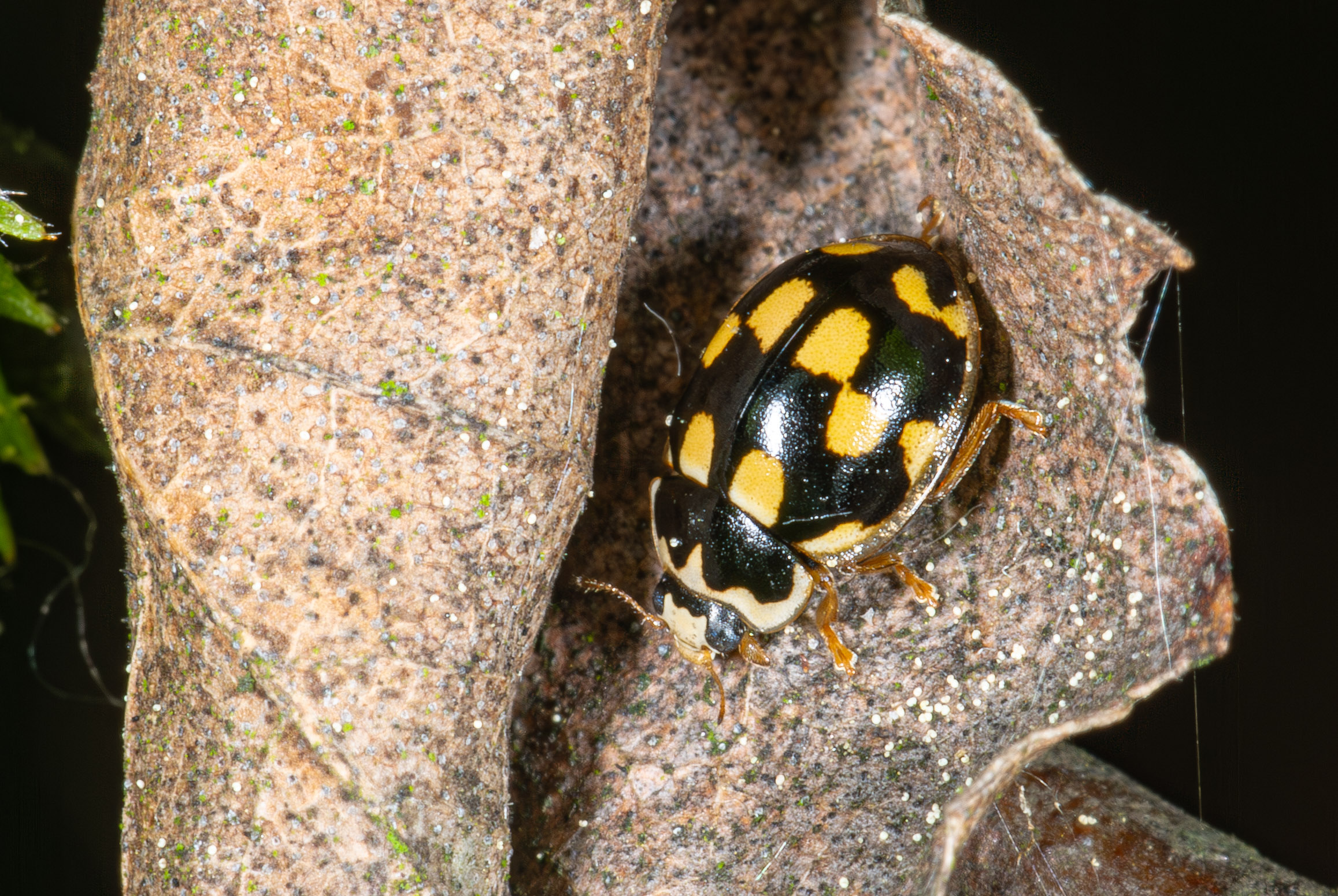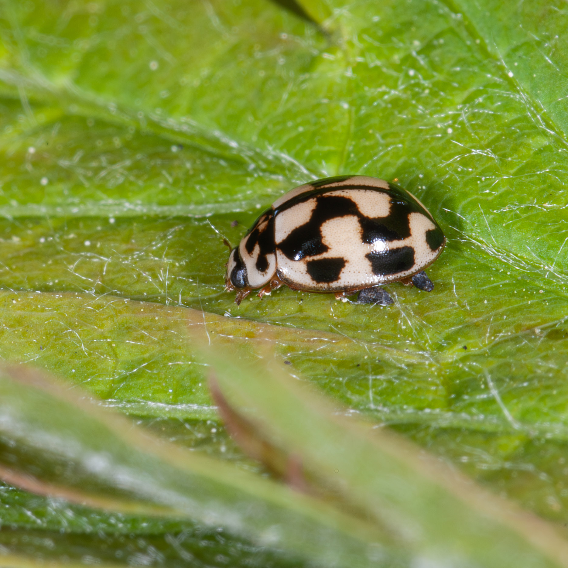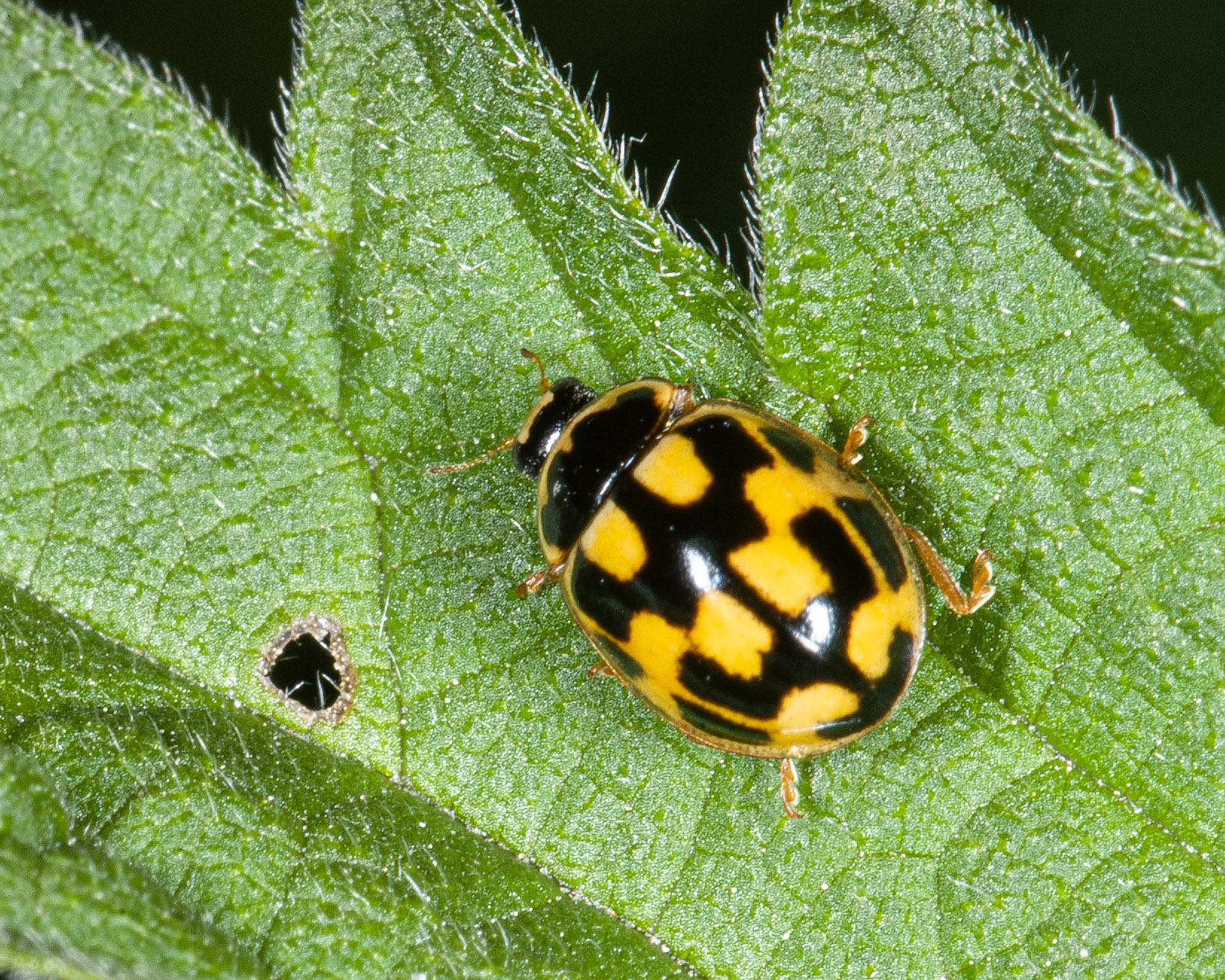 Het schaakbordlieveheersbeestje heeft veertien vlekken die redelijk rechthoekig zijn.
