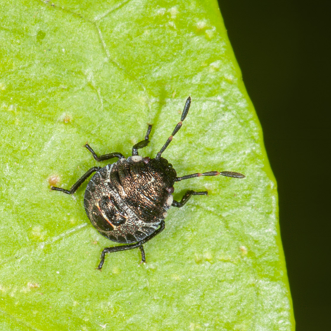 Een grauwe schildwants, een vieze Aziatische exoot die zich bij ons gevestigd heeft: