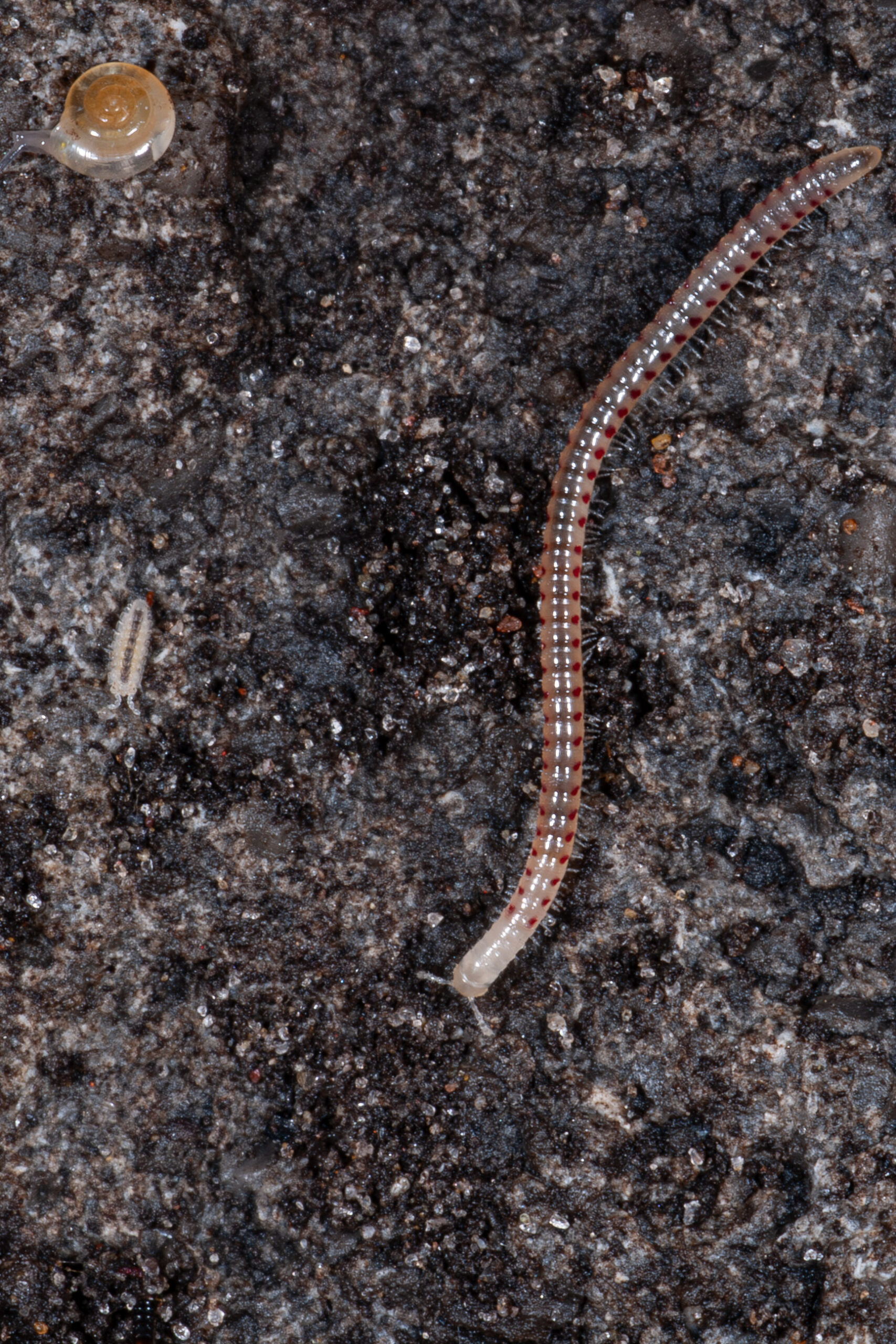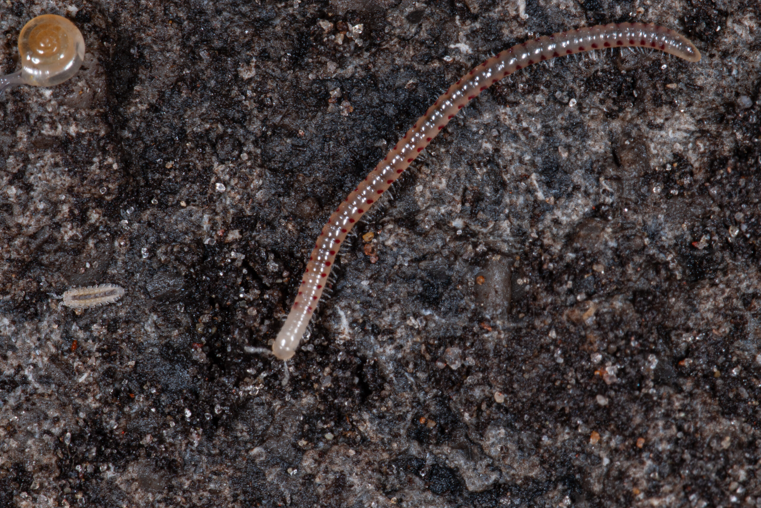 De roodstip is een miljoenpoot met een andermaal meer dan on the nose Nederlandstalige naam. De Engelstalige wikipediats zegt dat hij onder meer op suikerbieten leeft. Ik vond hem onder een steen.