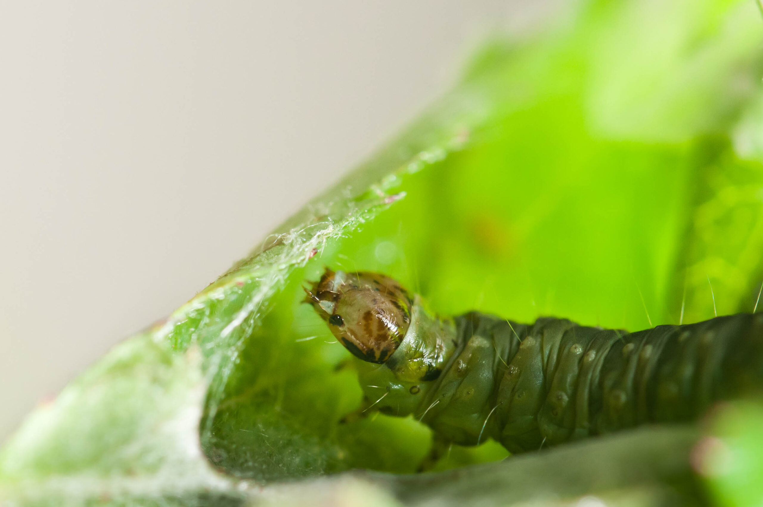Ik dacht eerst dat dt hetzelfde beest als die akelige wespen was, mar ’t is een anjerbladroller. Ook niet aangenaam voor de planten, maar toch minder erg dan wespen.