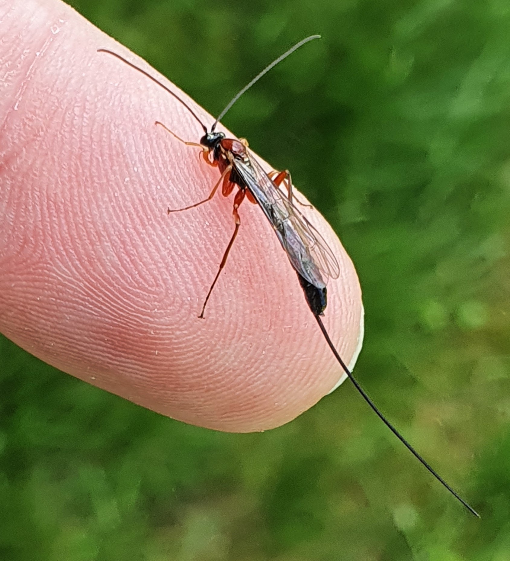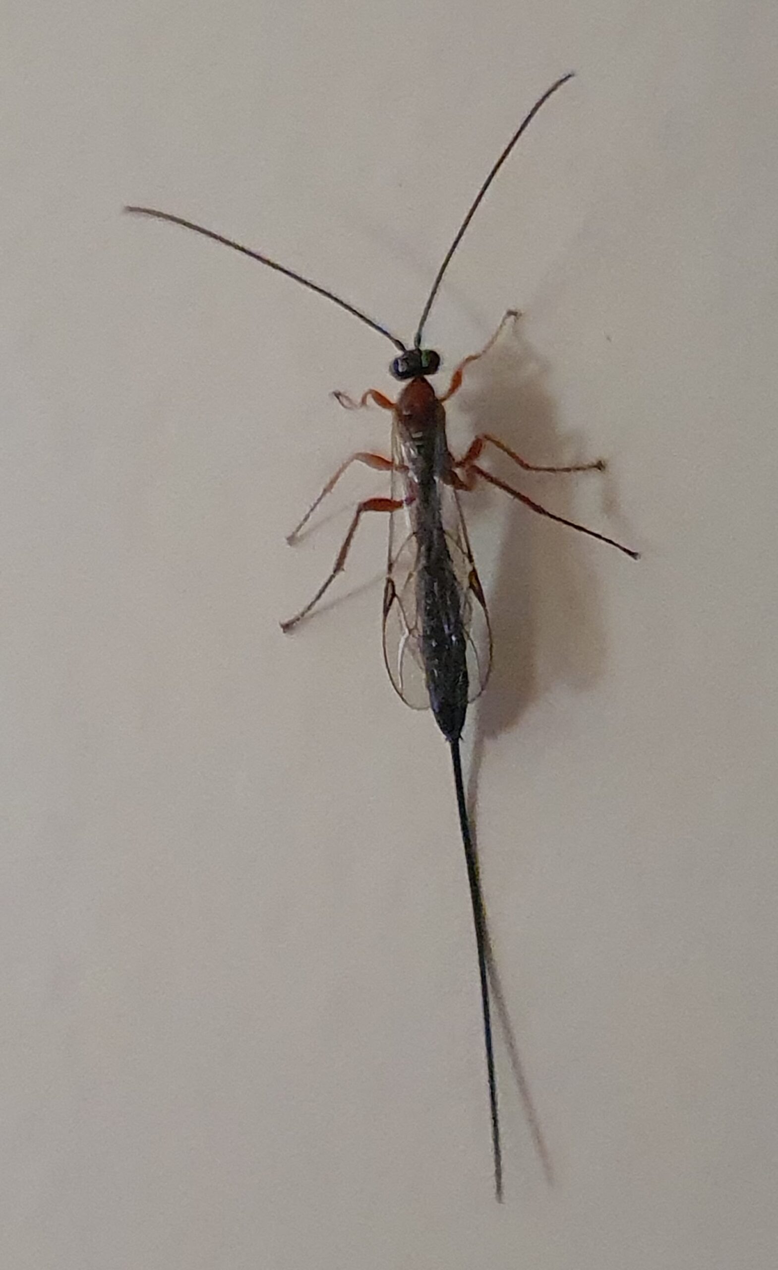 Ziet, een sluipwesp die op mijn hand kwam zitten (en dan doorvloog naar de muur).
